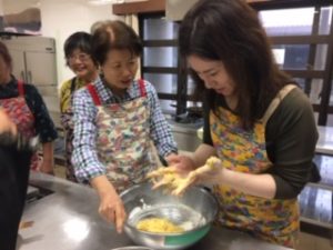 サーターアンダギーのタネをこねてますね~