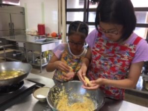 仲良し姉妹が、サーターアンダギー作りに
