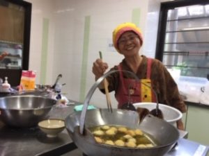 向かいの調理室では、いい匂いがしています。