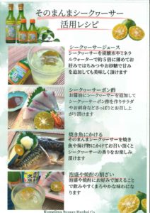 久米島産100%シークワーサージュース、島らっきょう、たんかん、グルクンかまぼこ、もずく、海ぶどうなど取り扱っています。