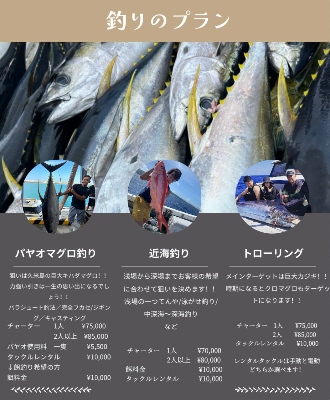 浮き漁礁(パヤオ)でのマグロ釣り、近海魚釣りどちらも体験可能です。